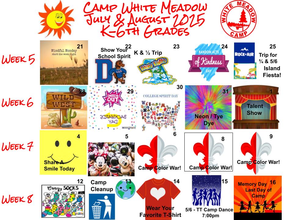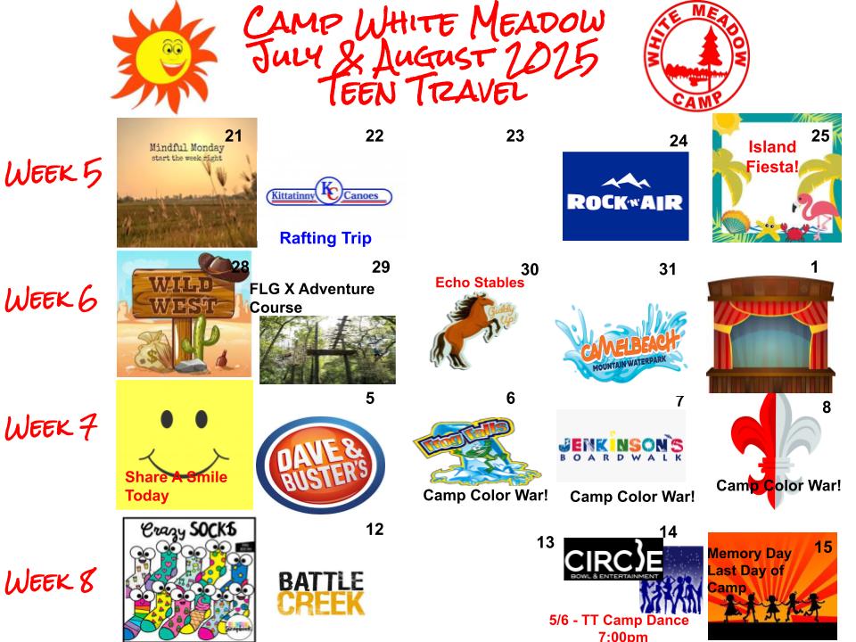 While these activities and trips are not guaranteed for the upcoming camp year, here are some examples of the fun we like to have at Camp White Meadow!